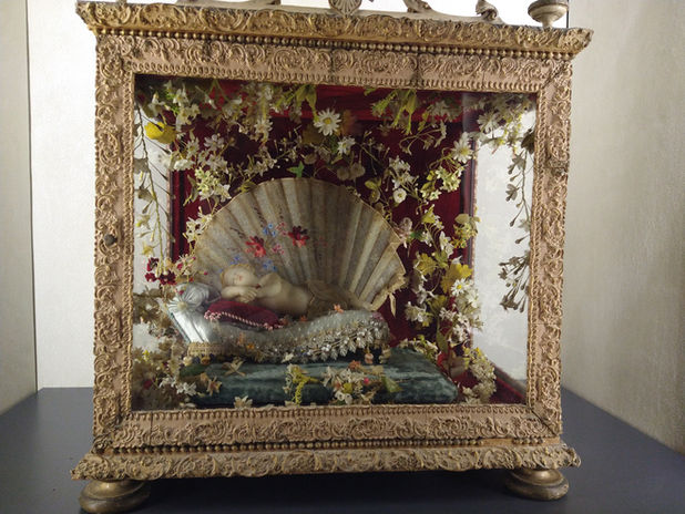 La tradizione dei bambinelli in cera entro campane di vetro, dal chiaro valore apotropaico contro le morti infantili premature e propiziatorio di fecondità per le giovani coppie di sposi, è soltanto l’ultima tappa dell’evoluzione della consolidata tradizione della ceroplastica in Sicilia. Originariamente le sculture in cera riproducevano parti anatomiche utilizzate per lo studio scientifico del corpo umano o impiegate come elementi a vista nelle sculture che avevano un’anima di stoppa ricoperta da vesti preziose, o ancora le cere riproducevano in miniatura celebri composizioni iconografiche opera di grandi pittori attivi in Sicilia.